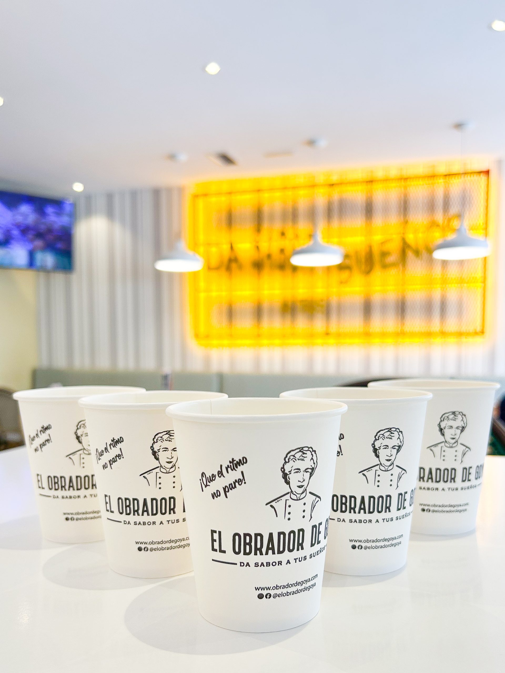 Gracias a esta alianza, los productos de El Obrador de Goya viajan con una presentación cuidada y sostenible, en línea con la filosofía de ambas empresas: ofrecer calidad sin renunciar al respeto por el medioambiente. Bolsas de papel personalizadas (de panadería, bollería, antigrasa, etc.), vasos de cartón para café cajas para tartas y pastas y otros elementos de comunicación como bobinas de papel para envolver productos de pastelería permiten transmitir cercanía y reforzar la identidad de la marca en cada punto de contacto con el cliente.